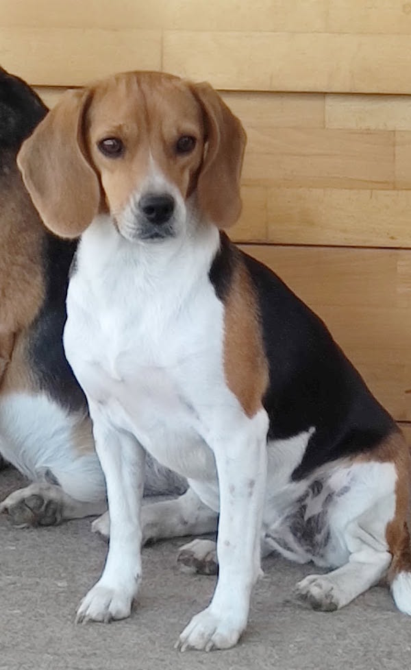 Angelina llatkísérletből mentett tricolor nőstény Beagle.